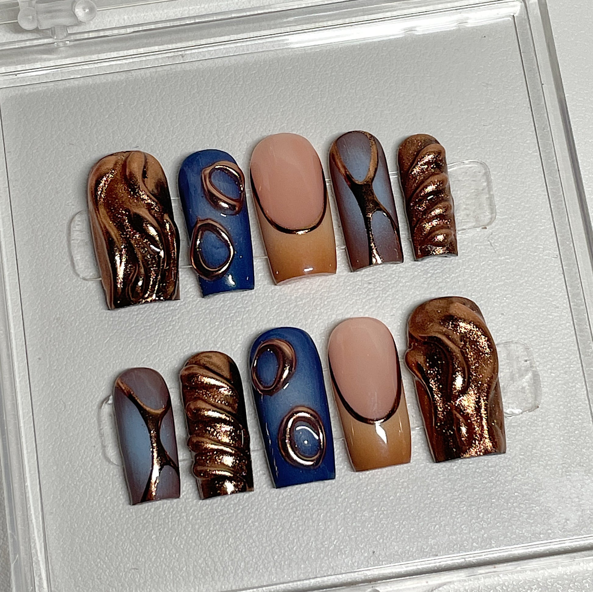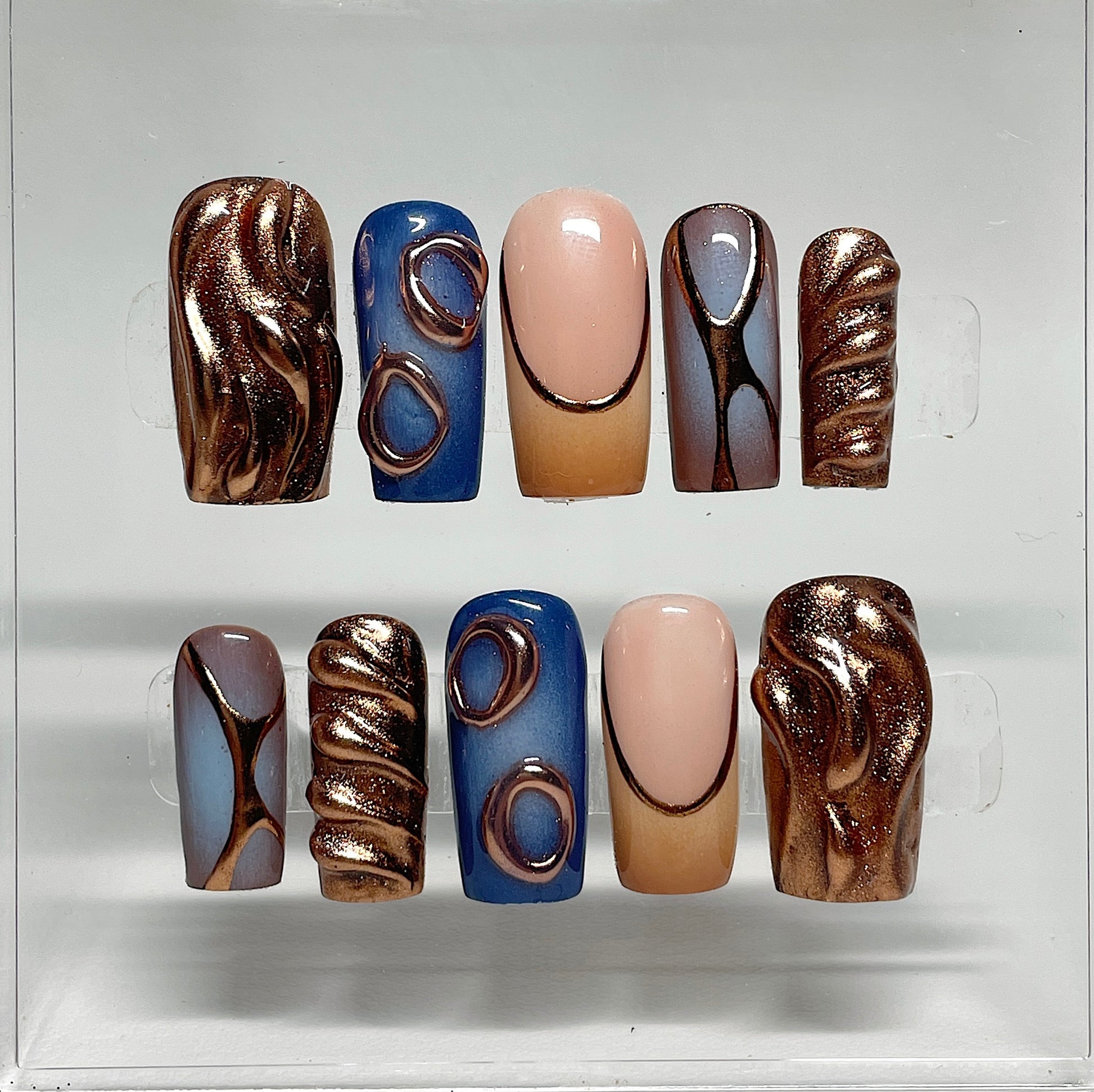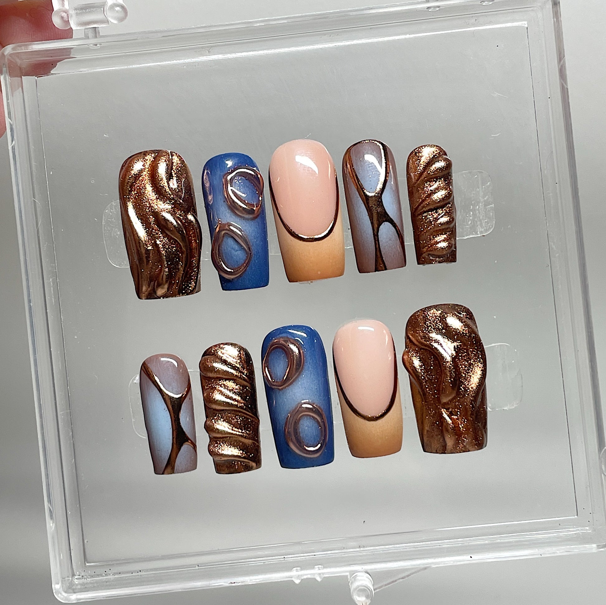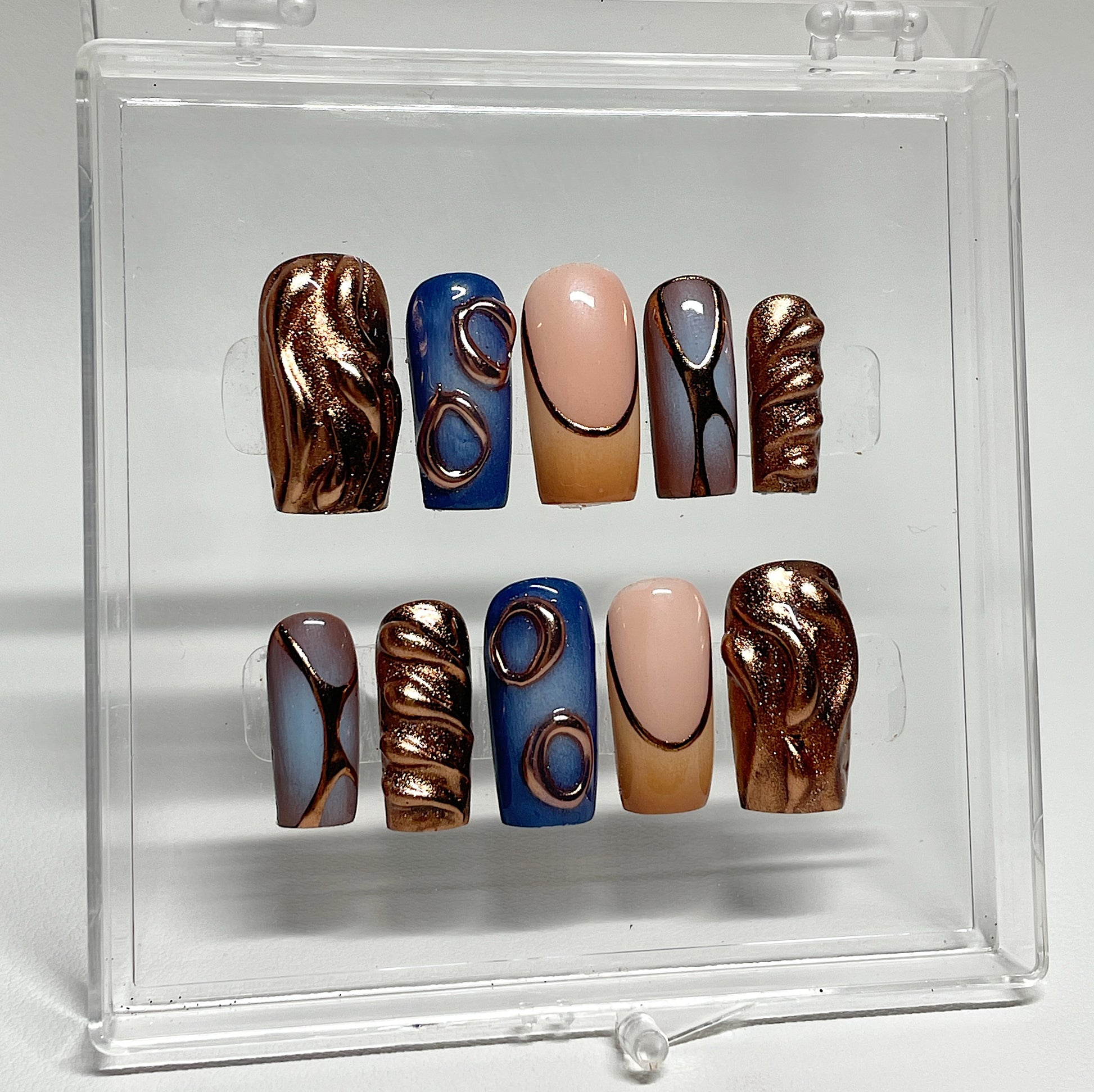 Your pressie set comes with 10 reusable press on nails as pictured, instructions on how to apply and remove your pressies, and an application kit containing everything you need for a seamless application!
