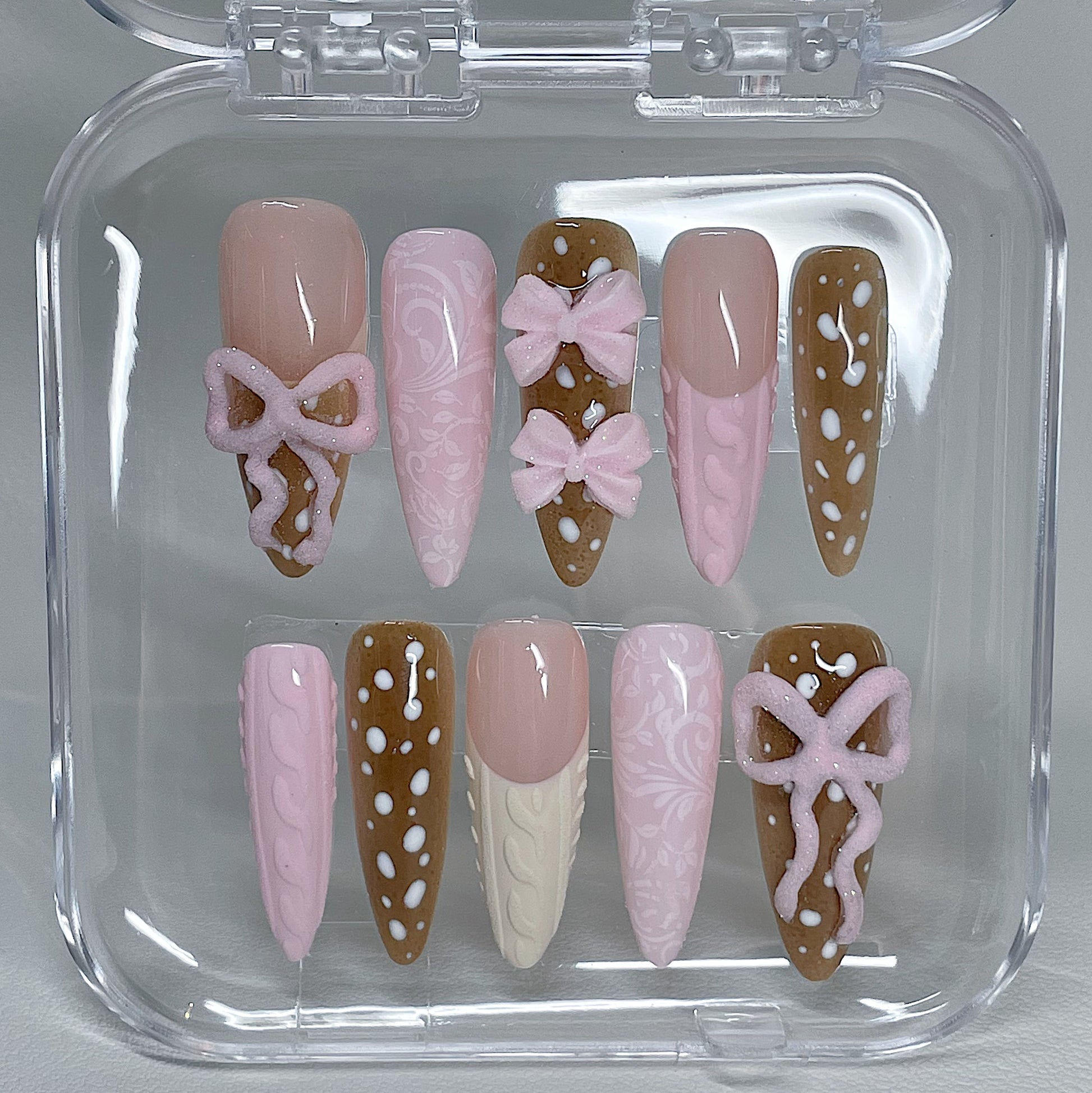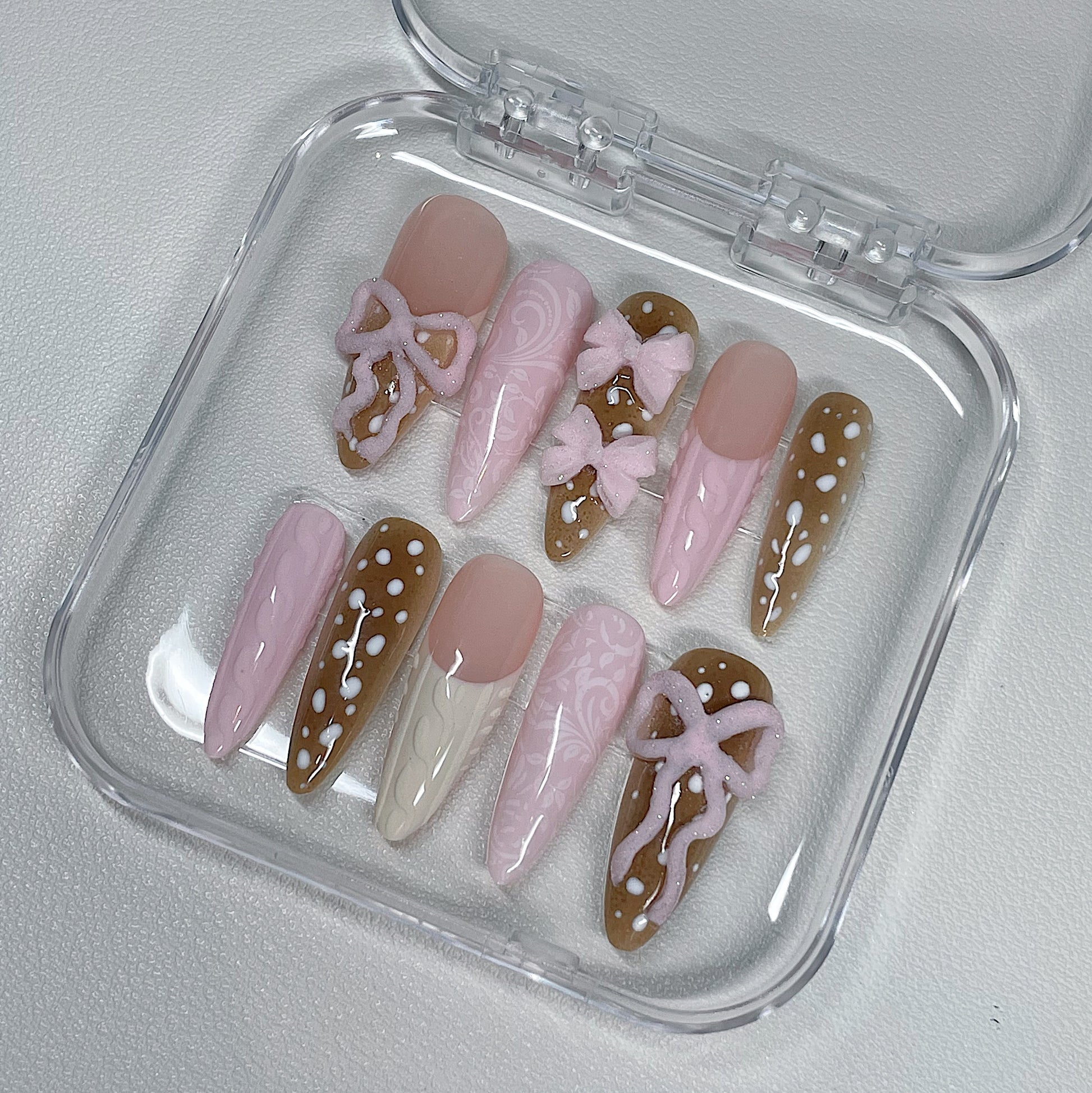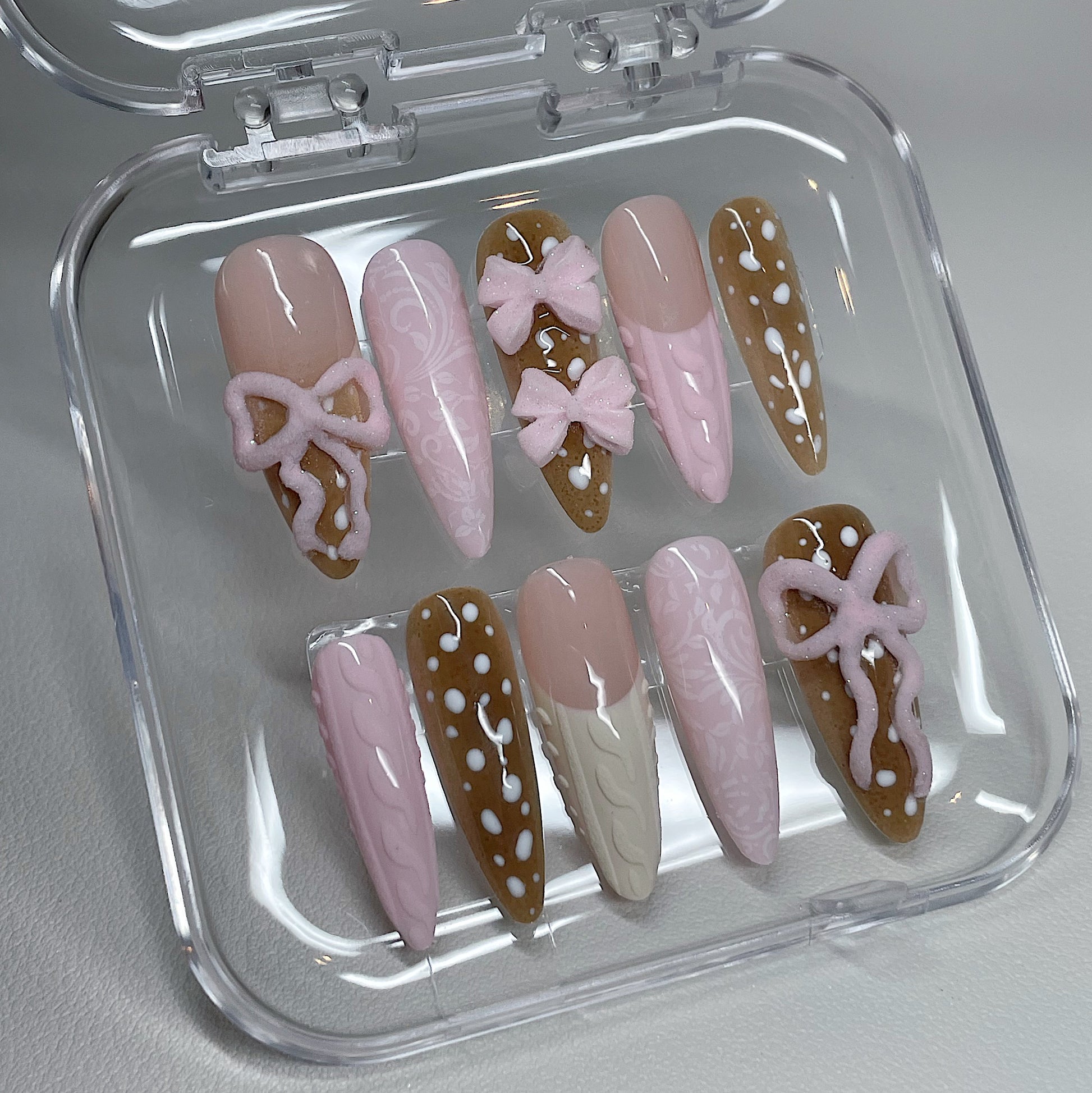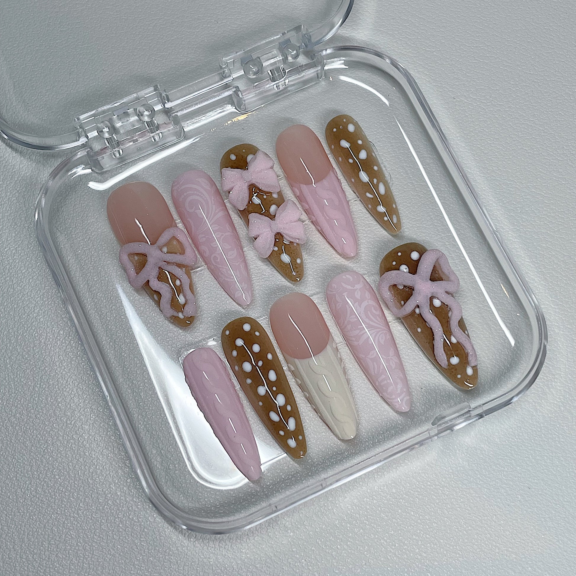 Your pressie set comes with 10 reusable press on nails as pictured, instructions on how to apply and remove your pressies, and an application kit containing everything you need for a seamless application!