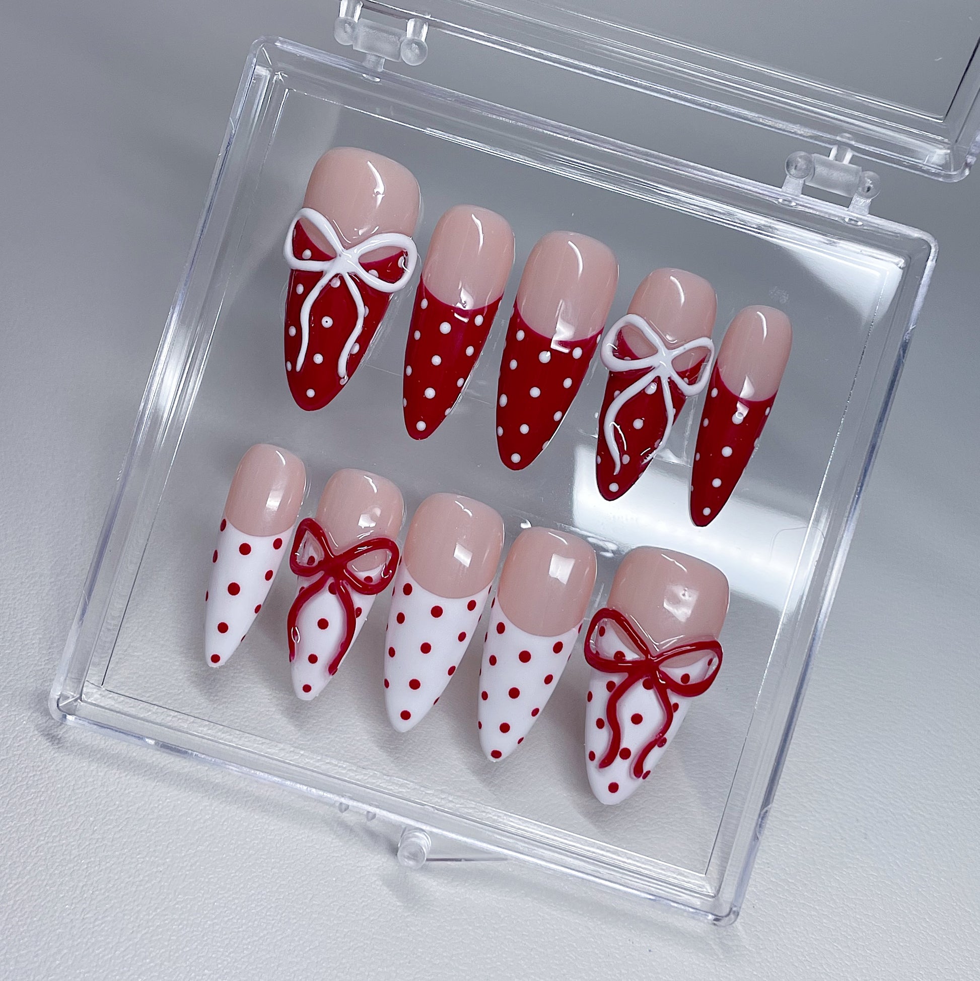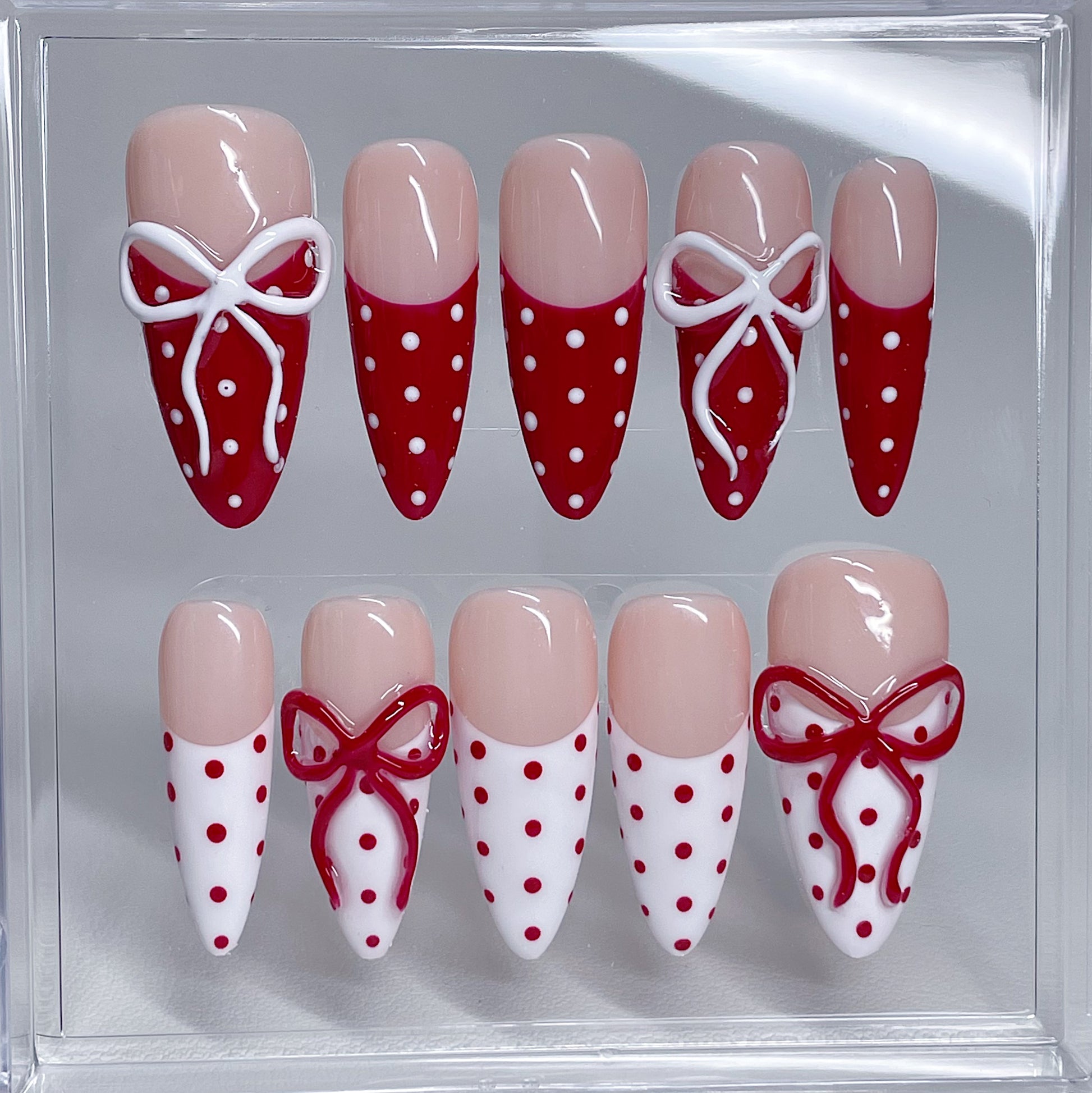 Your pressie set comes with 10 reusable press on nails as pictured, instructions on how to apply and remove your pressies, and an application kit containing everything you need for a seamless application!