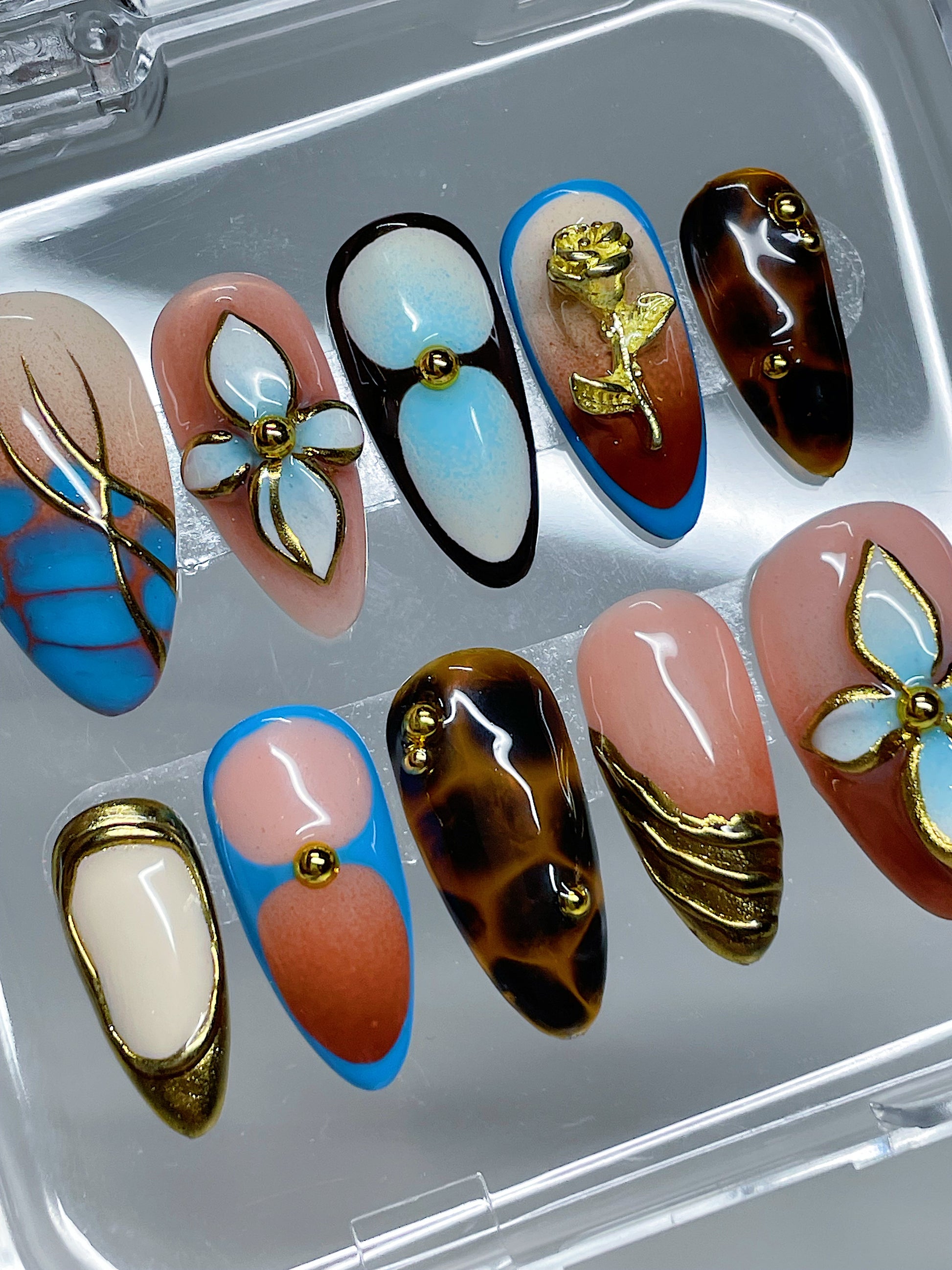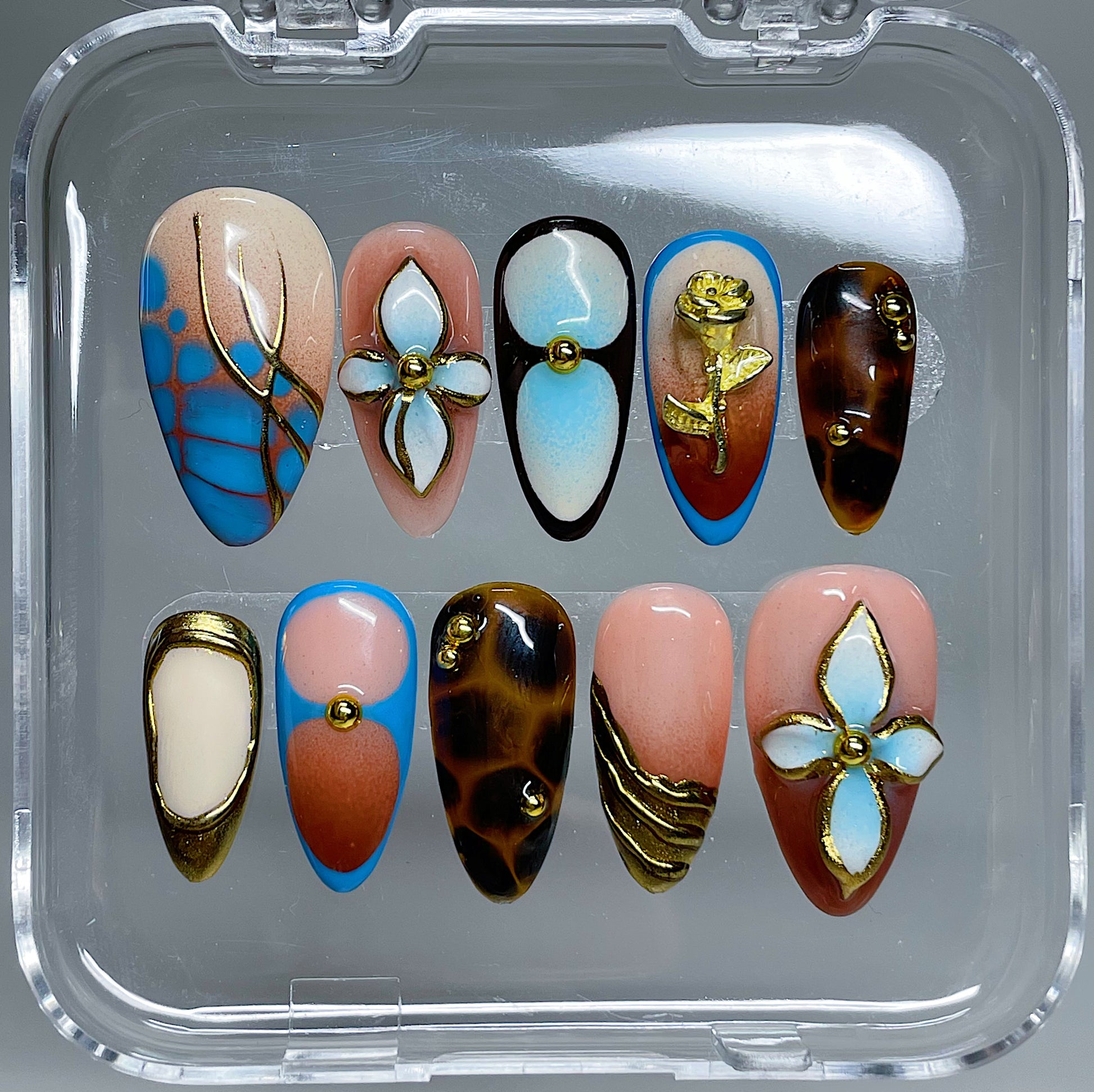 Your pressie set comes with 10 reusable press on nails as pictured, instructions on how to apply and remove your pressies, and an application kit containing everything you need for a seamless application!