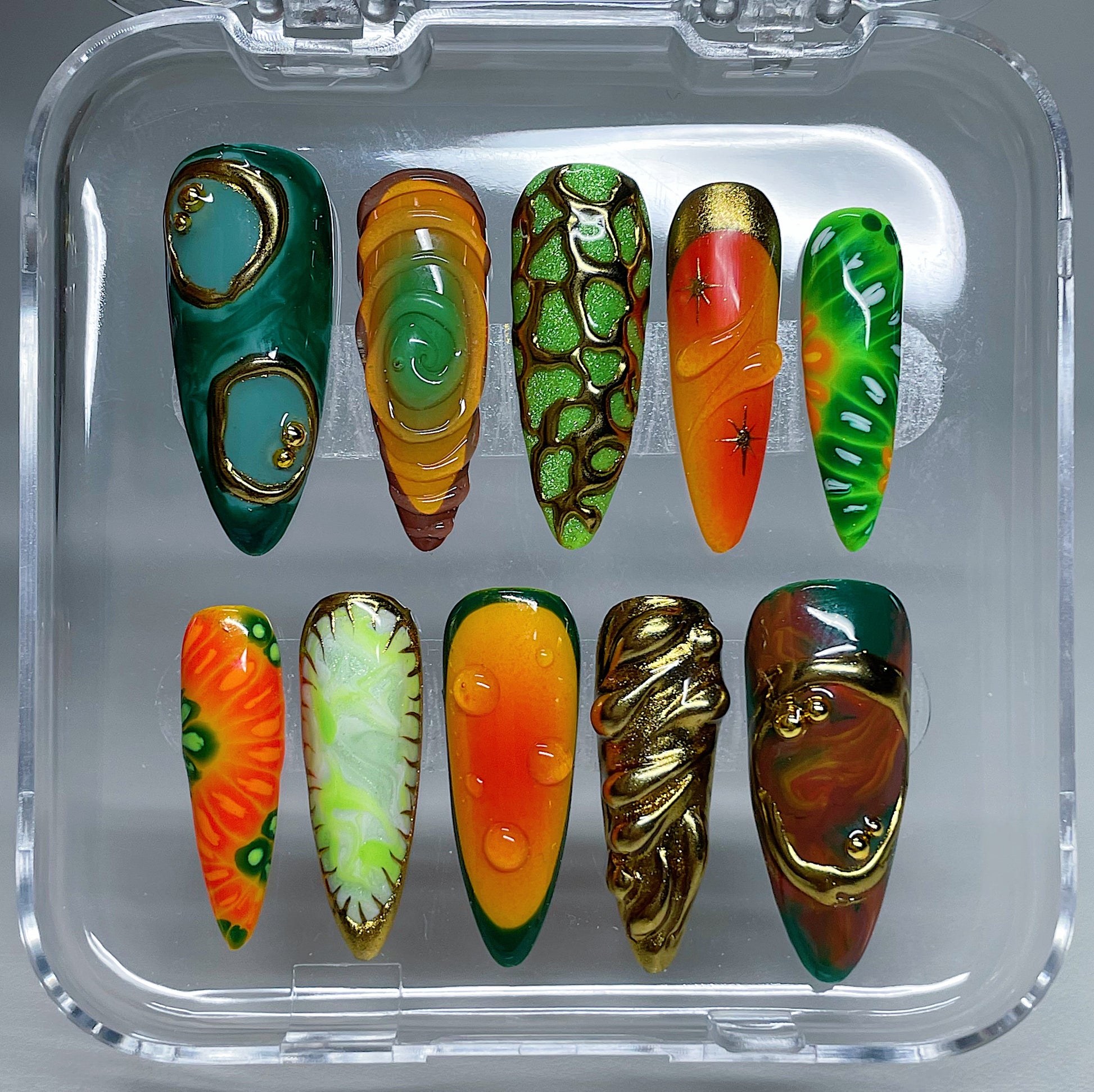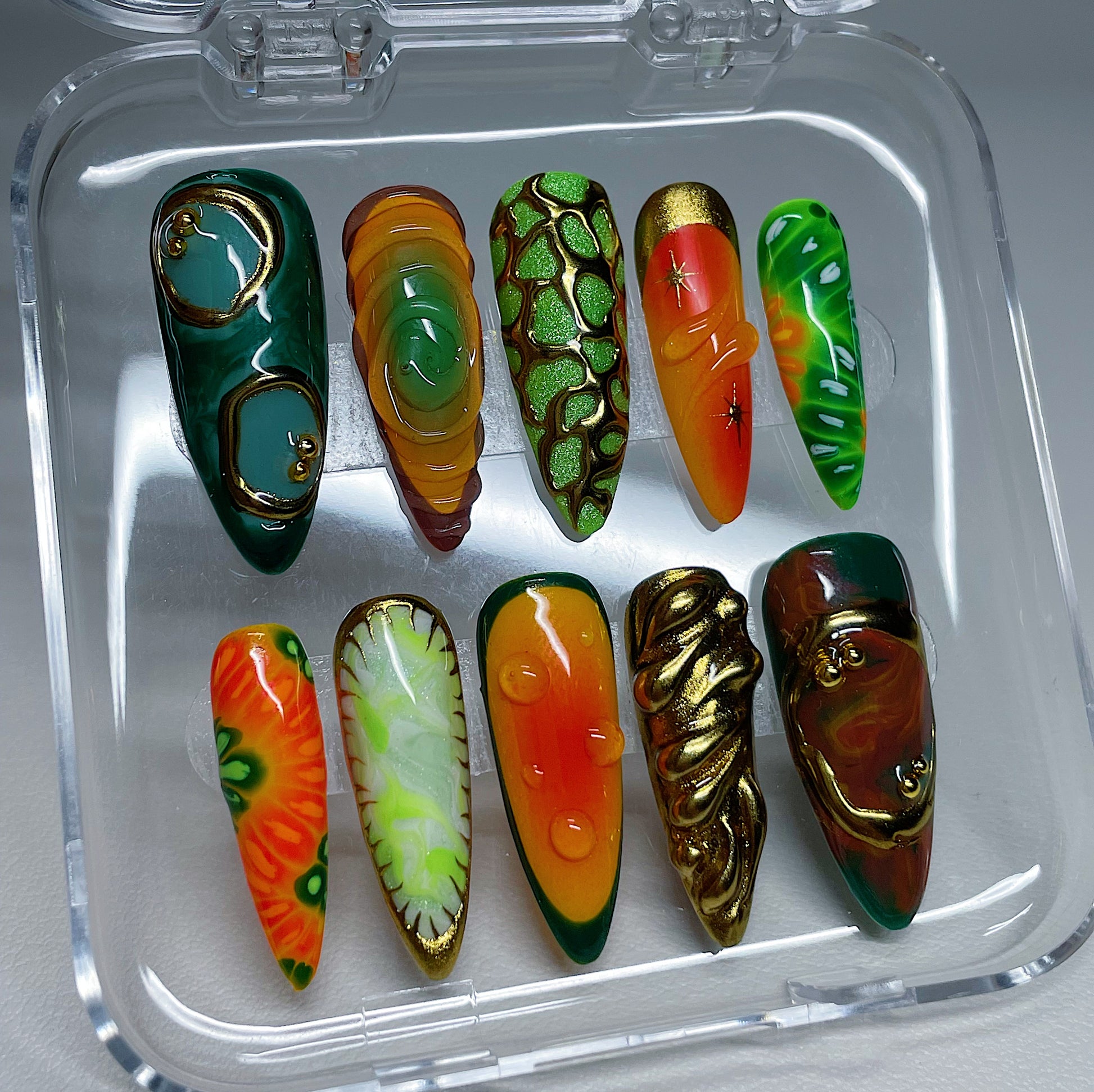 Your pressie set comes with 10 reusable press on nails as pictured, instructions on how to apply and remove your pressies, and an application kit containing everything you need for a seamless application!