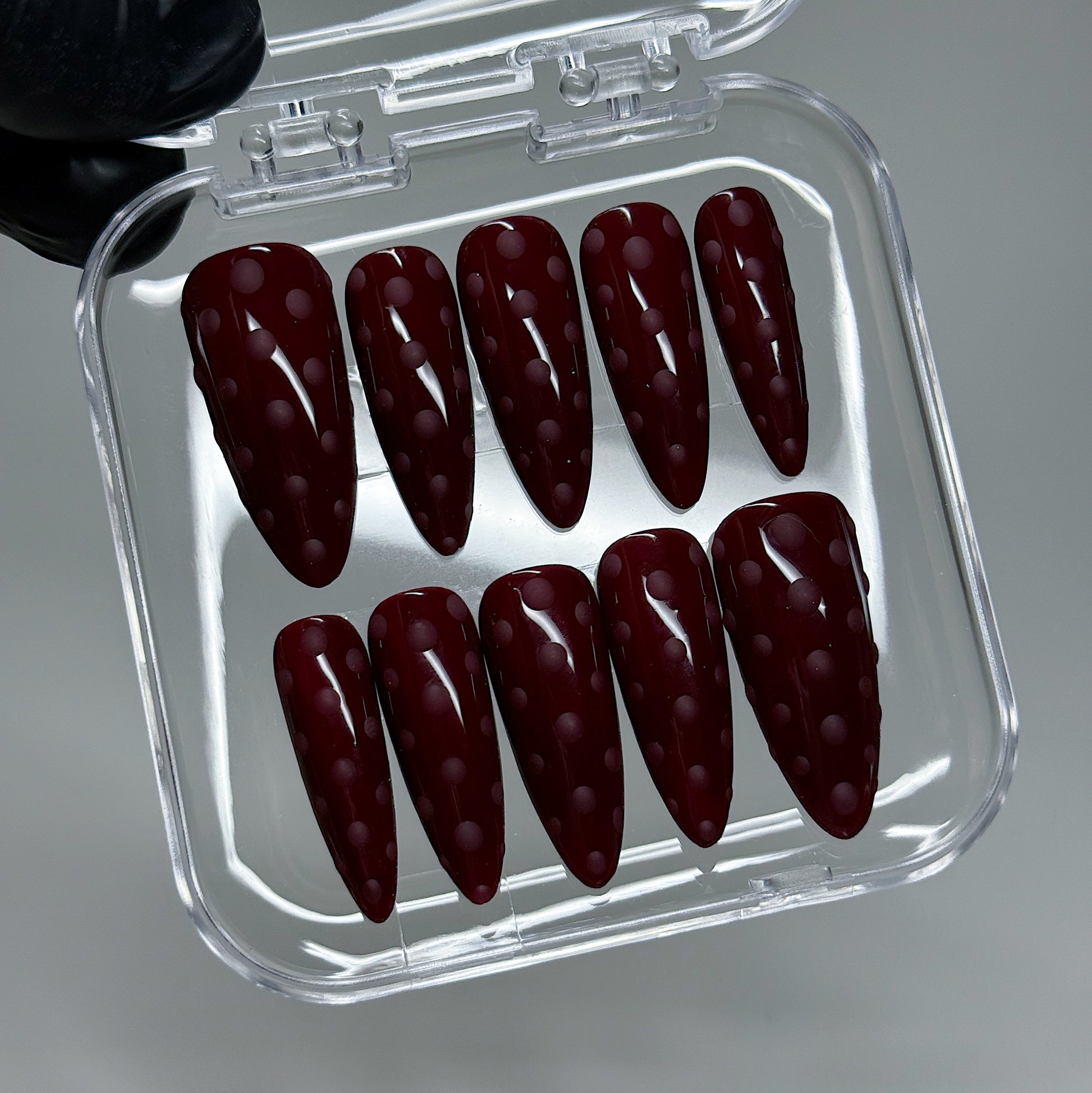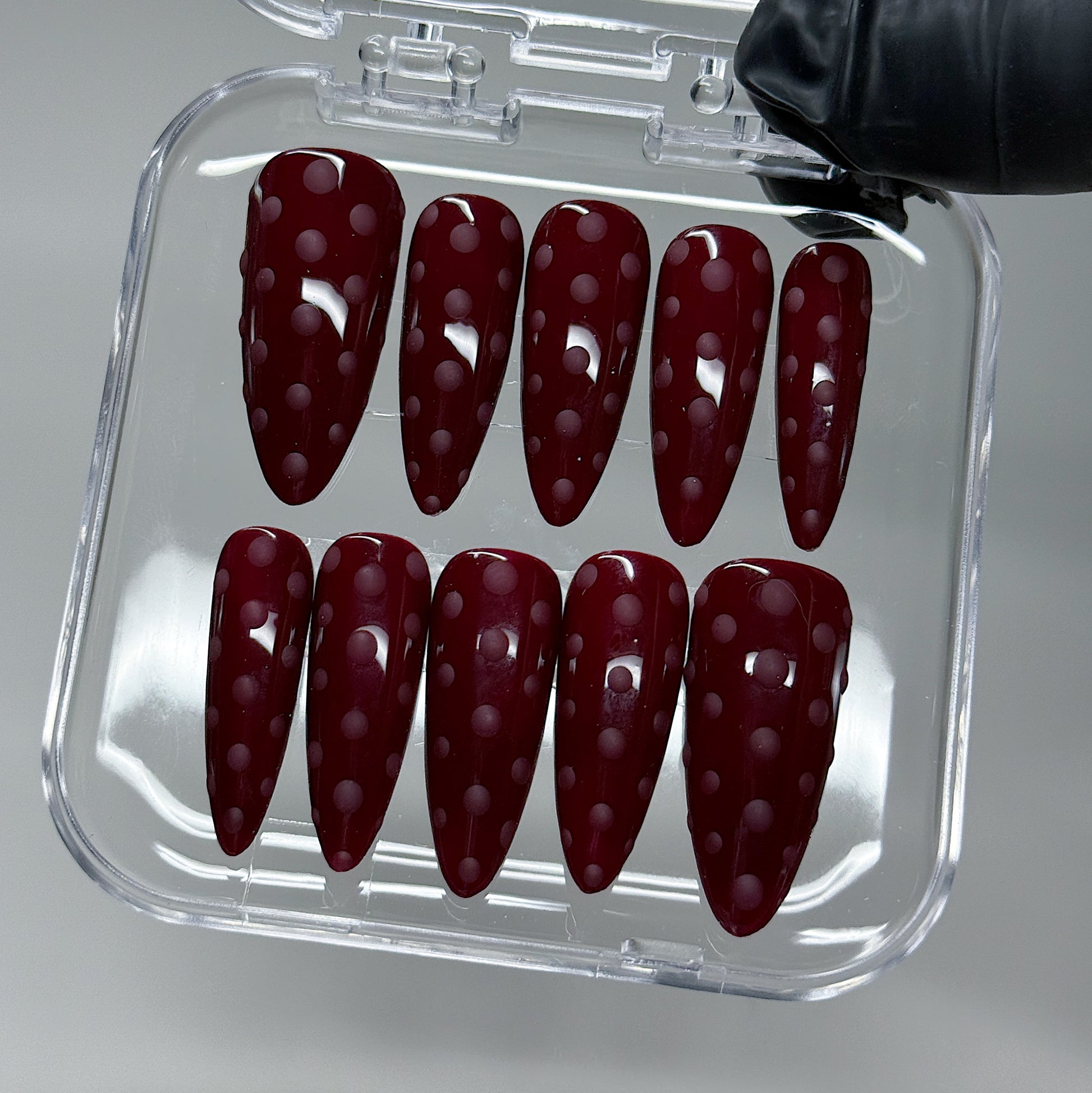 Your pressie set comes with 10 reusable press on nails as pictured, instructions on how to apply and remove your pressies, and an application kit containing everything you need for a seamless application!