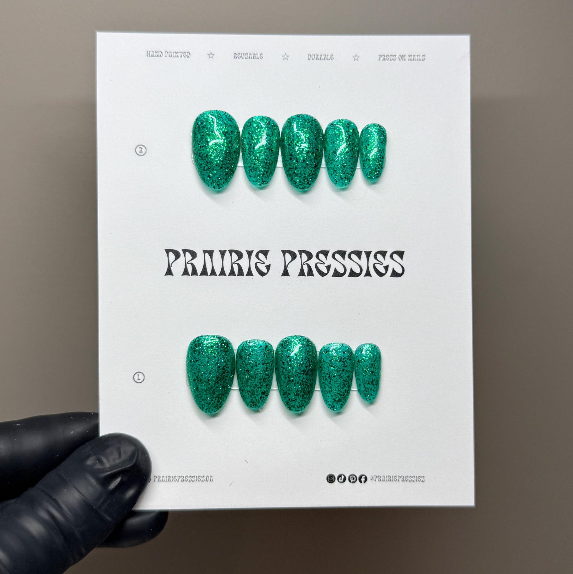 Your pressie set comes with 10 reusable press on nails as pictured, instructions on how to apply and remove your pressies, and an application kit containing everything you need for a seamless application!