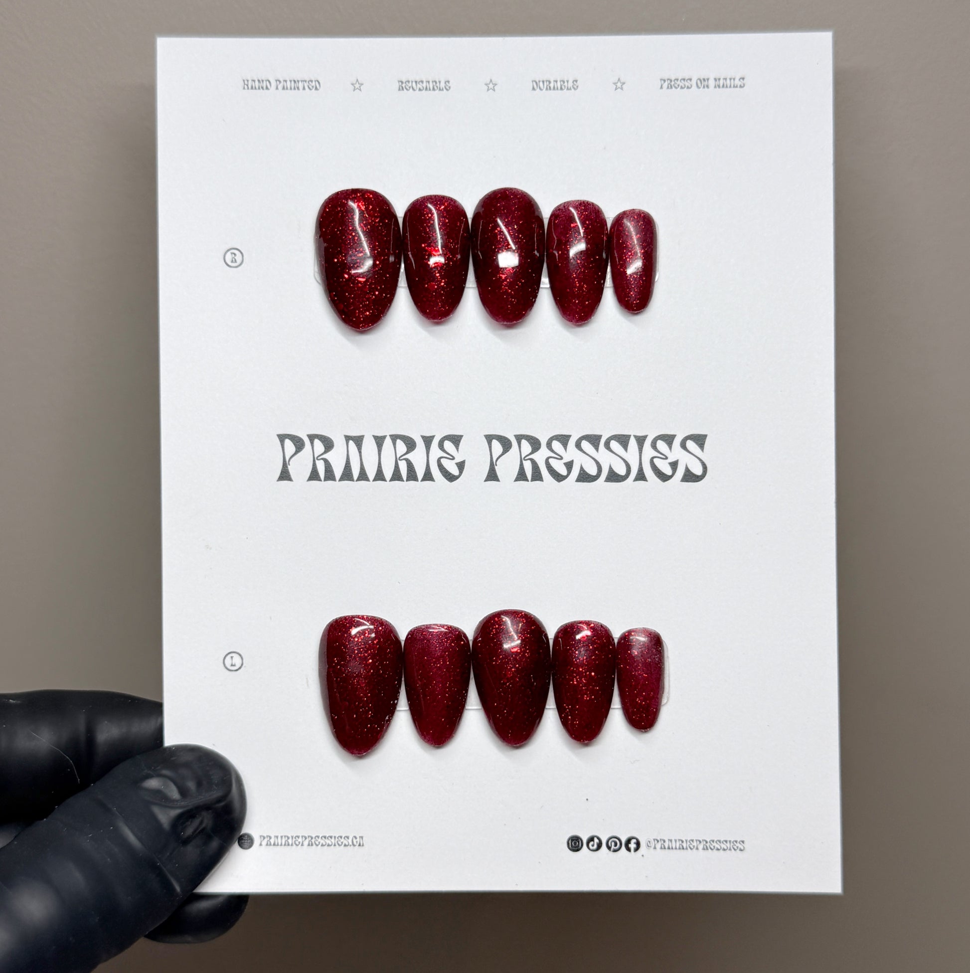 Your pressie set comes with 10 reusable press on nails as pictured, instructions on how to apply and remove your pressies, and an application kit containing everything you need for a seamless application!