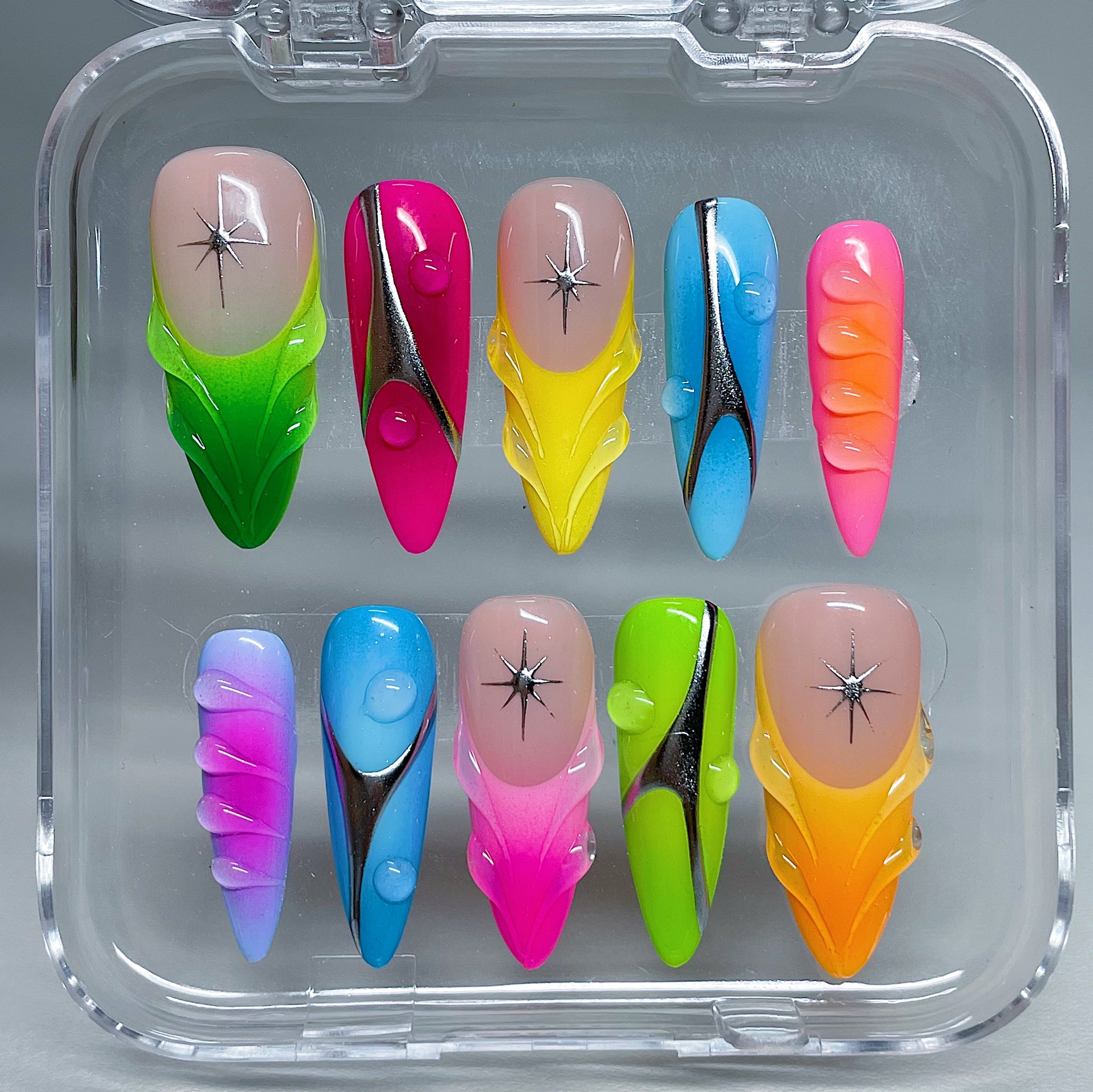Your pressie set comes with 10 reusable press on nails as pictured, instructions on how to apply and remove your pressies, and an application kit containing everything you need for a seamless application!