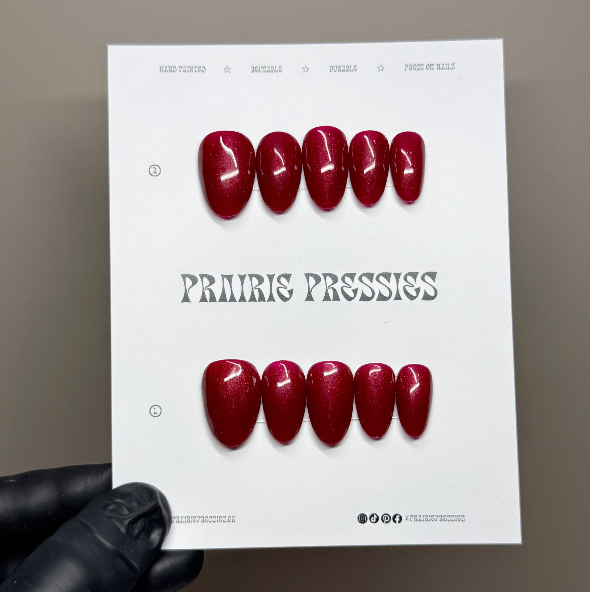 Your pressie set comes with 10 reusable press on nails as pictured, instructions on how to apply and remove your pressies, and an application kit containing everything you need for a seamless application!