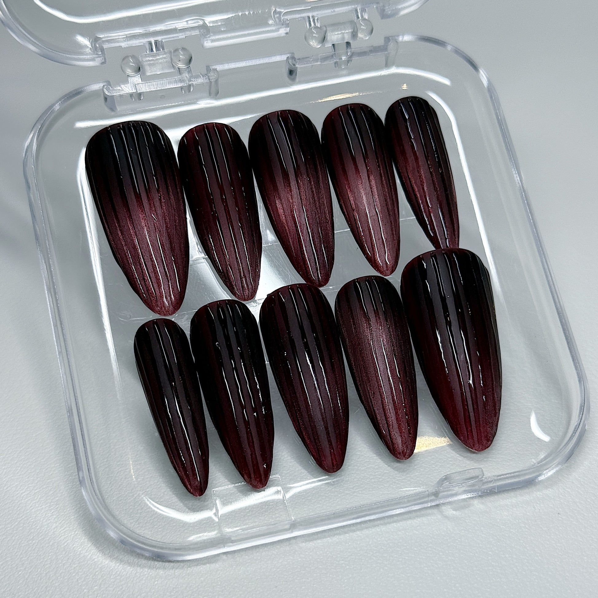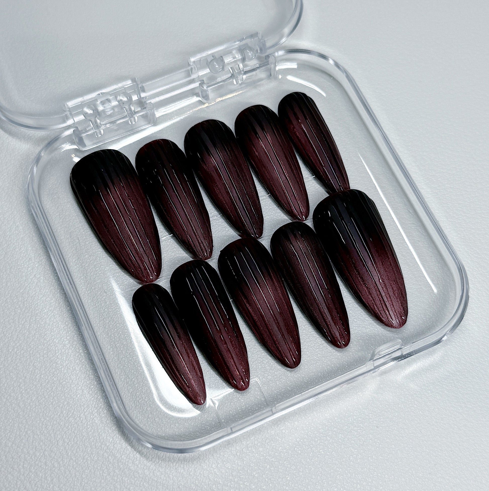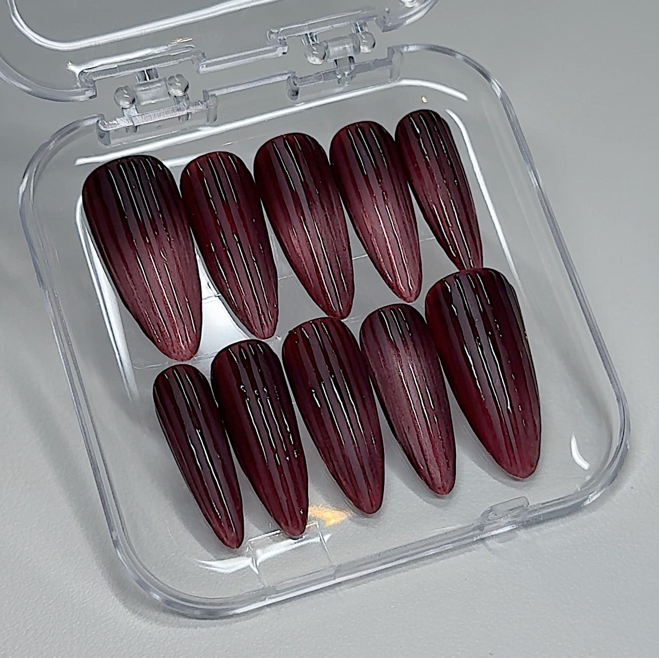 Your pressie set comes with 10 reusable press on nails as pictured, instructions on how to apply and remove your pressies, and an application kit containing everything you need for a seamless application!