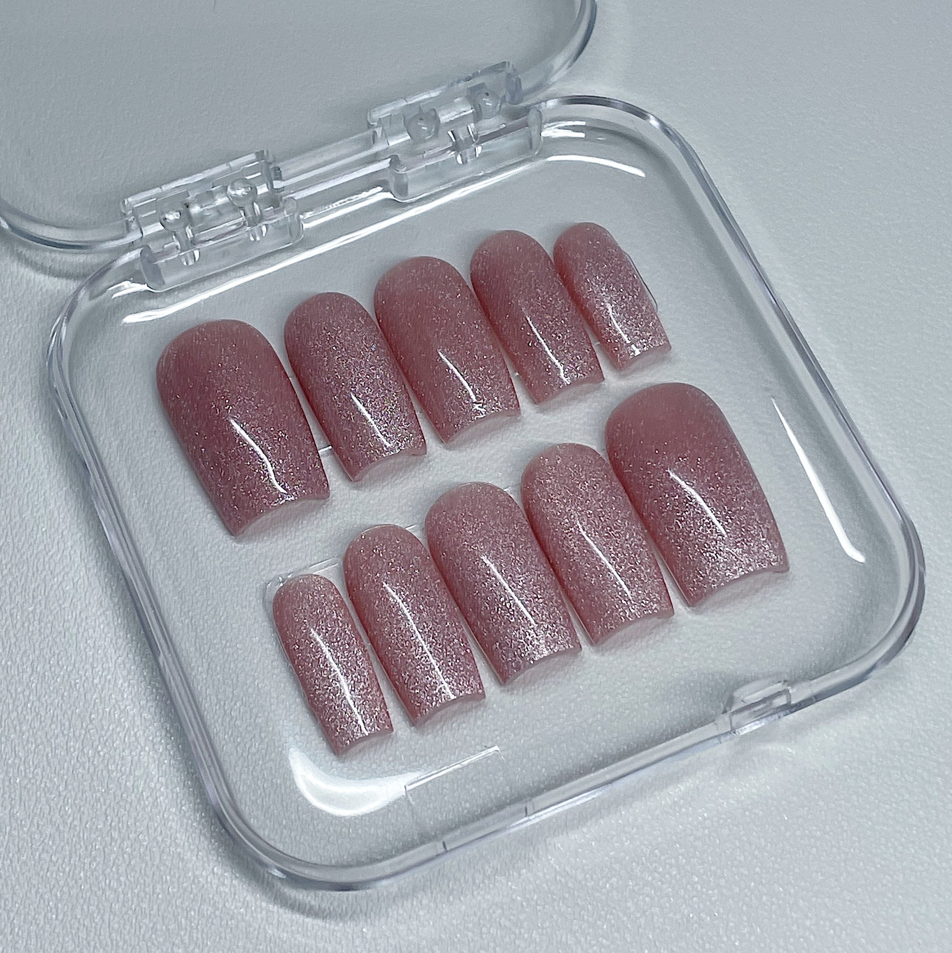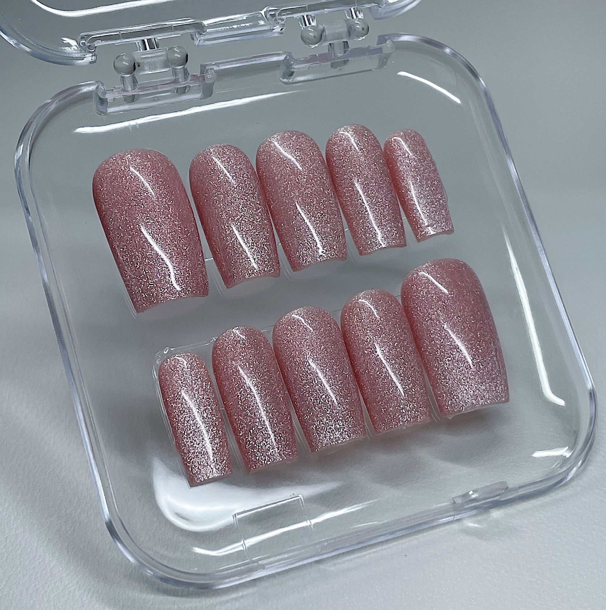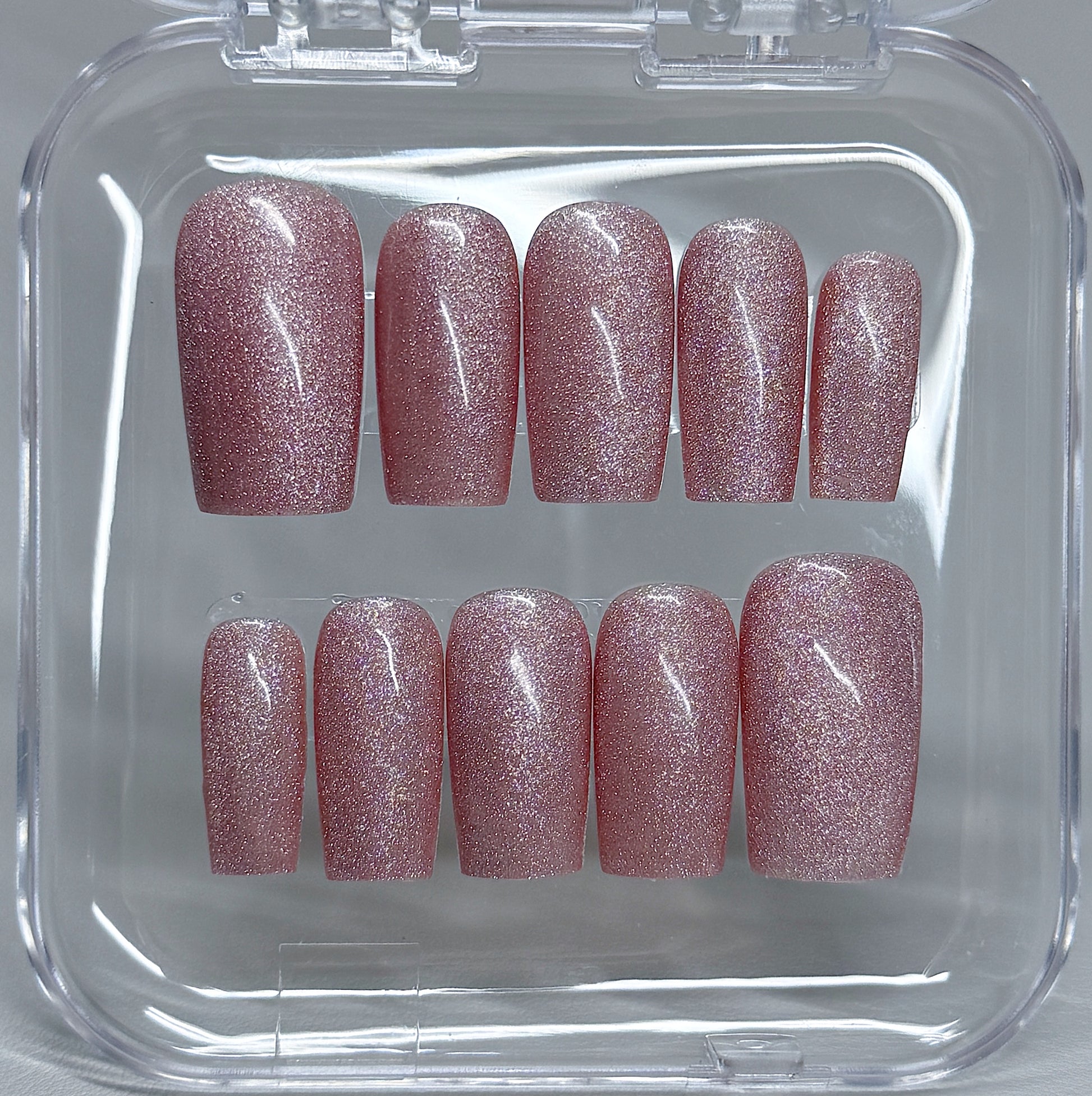 Your pressie set comes with 10 reusable press on nails as pictured, instructions on how to apply and remove your pressies, and an application kit containing everything you need for a seamless application!