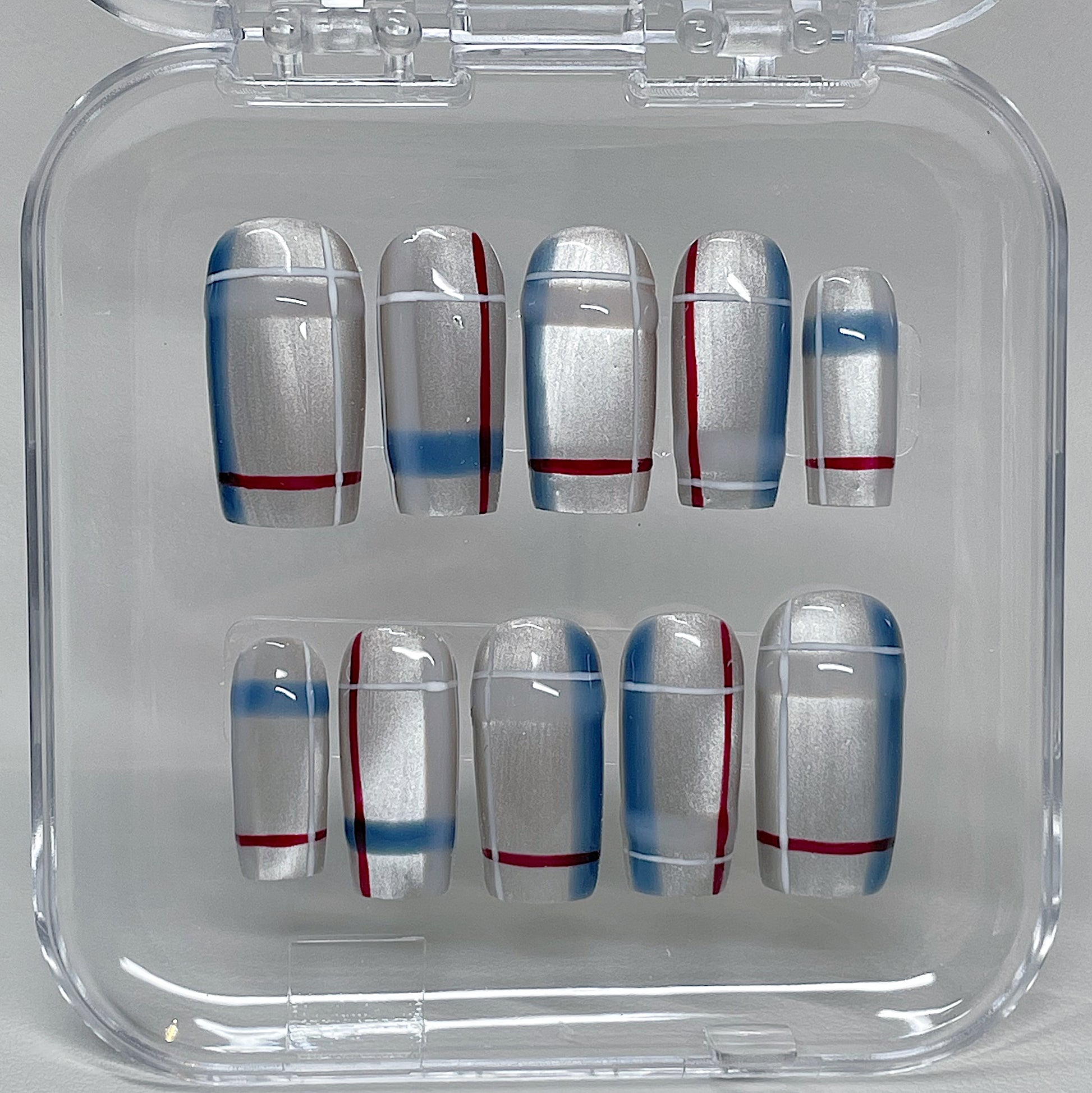 Your pressie set comes with 10 reusable press on nails as pictured, instructions on how to apply and remove your pressies, and an application kit containing everything you need for a seamless application!
