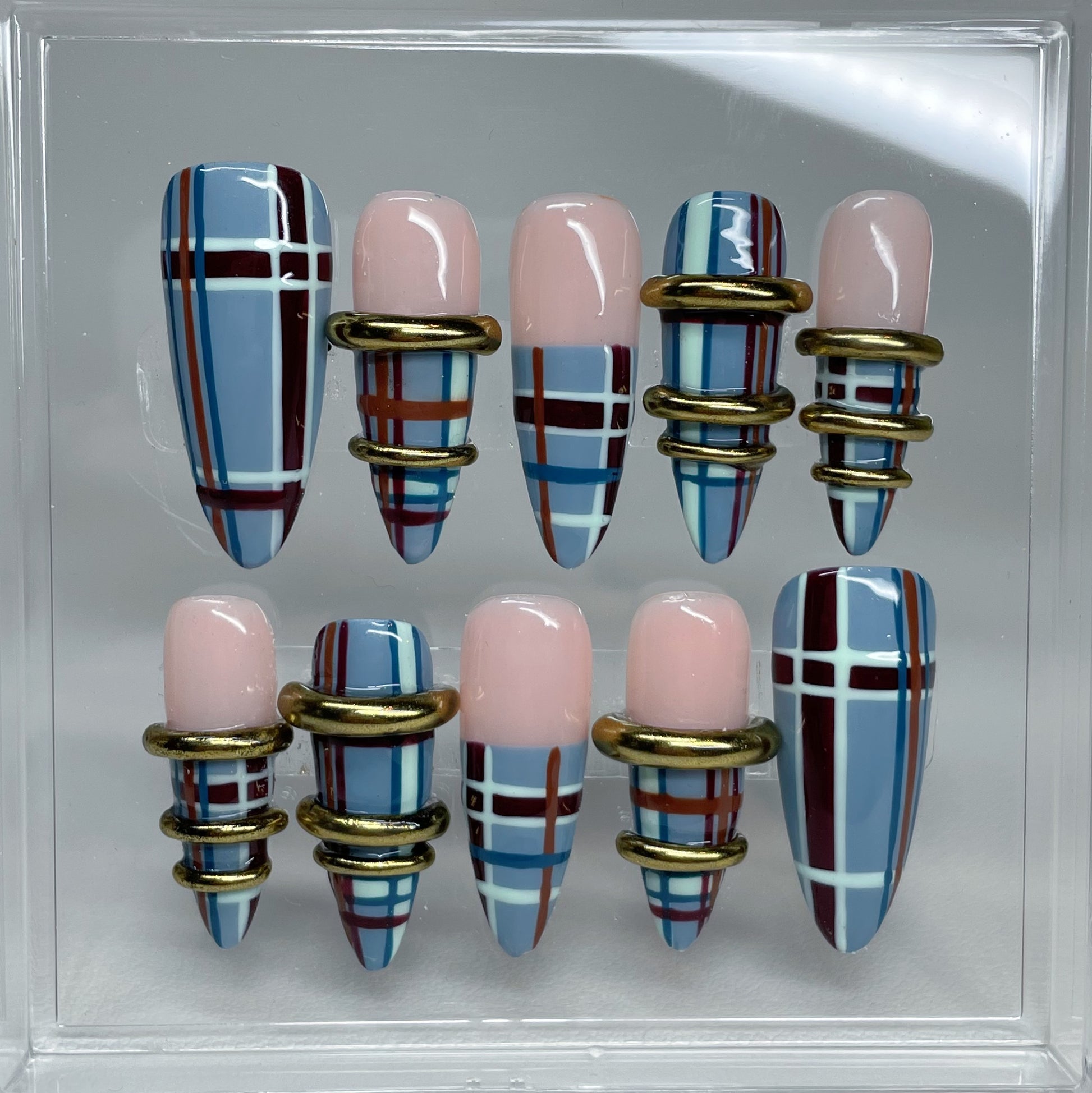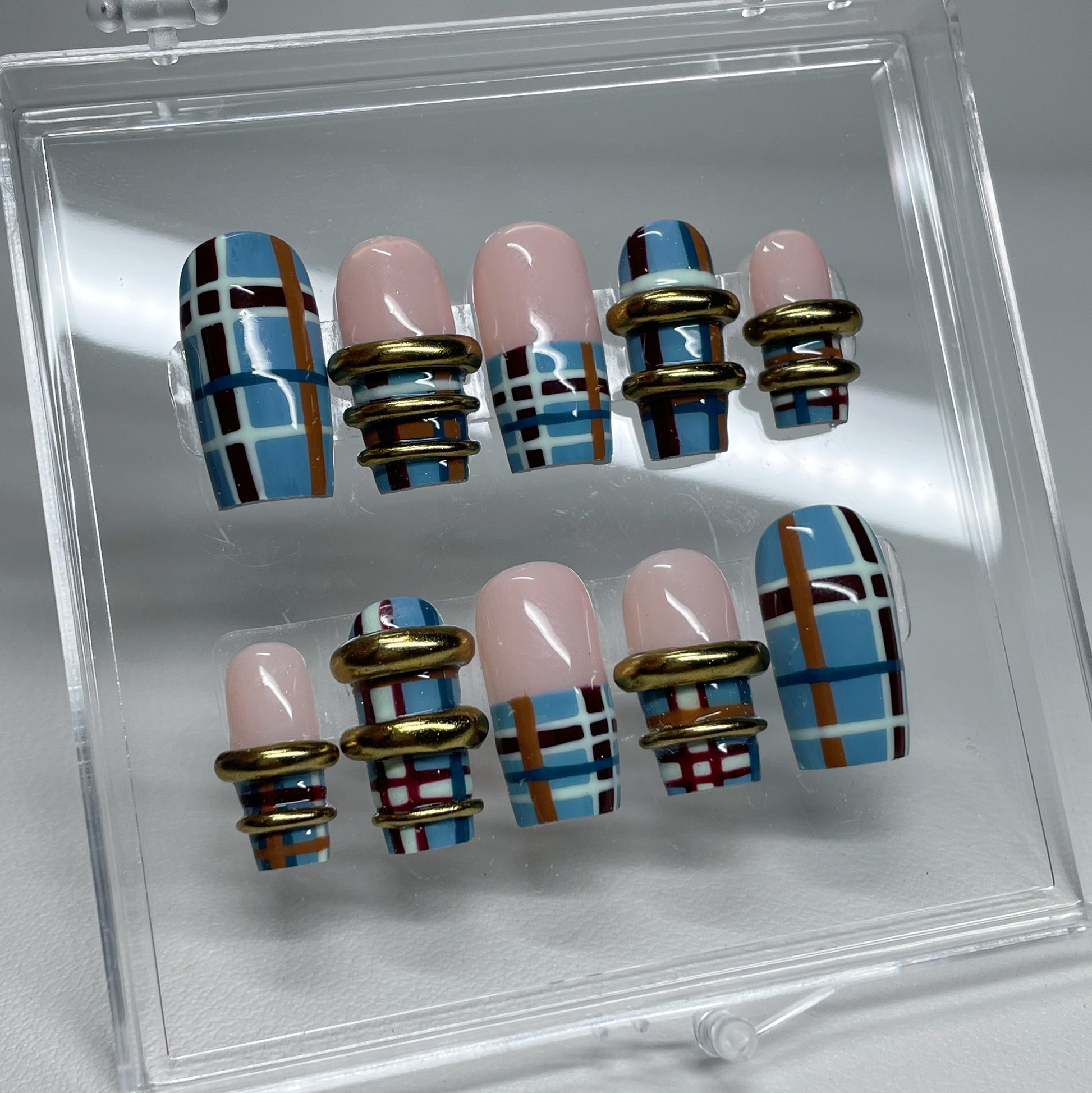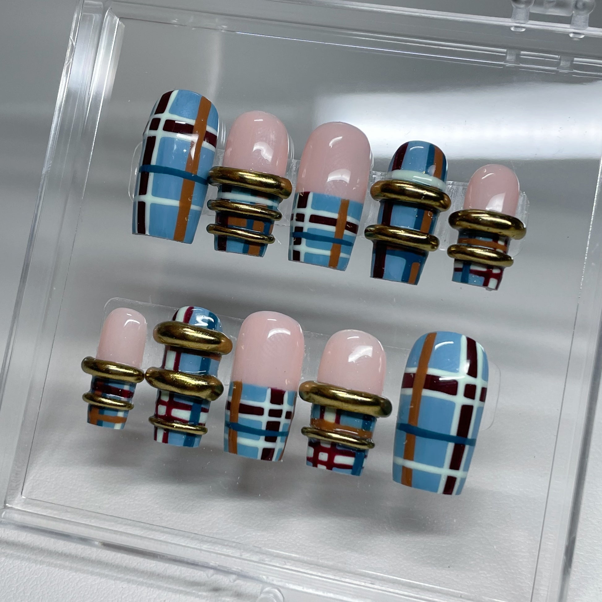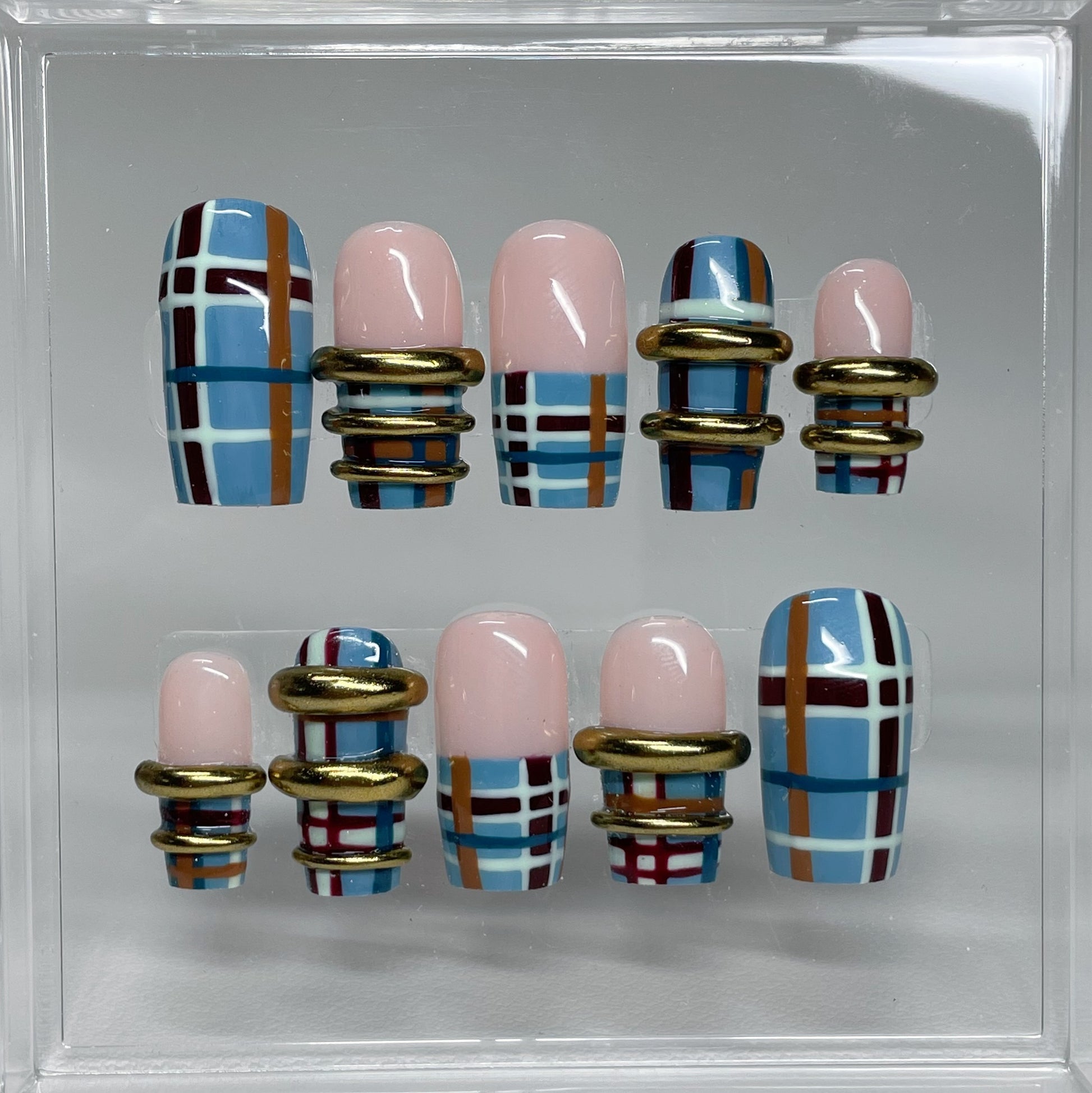 Your pressie set comes with 10 reusable press on nails as pictured, instructions on how to apply and remove your pressies, and an application kit containing everything you need for a seamless application!